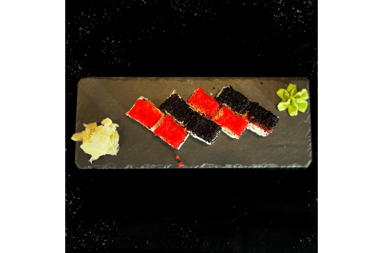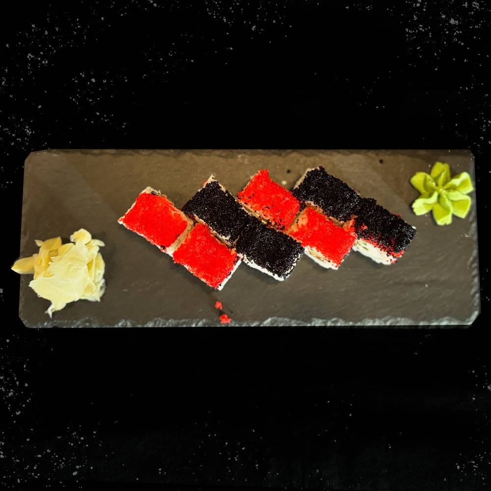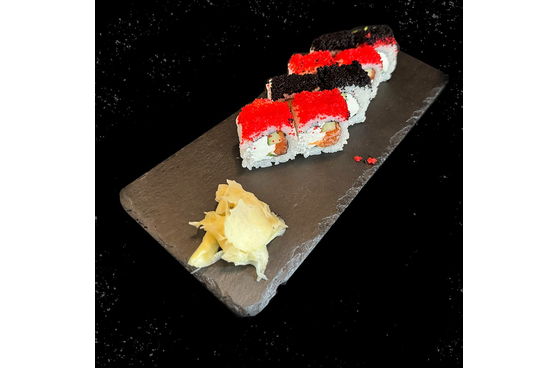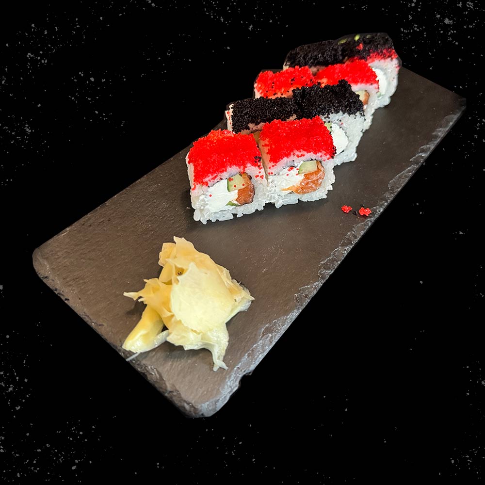 Состав: лосось, огурец, соус Том Ям, икра тобика. рис, нори